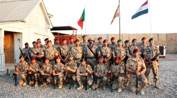 Soldados portugueses reforçaram o contingente espanhol destacado no Iraque e desempenham funções de treino, tarefas operativas, logísticas e de serviços.