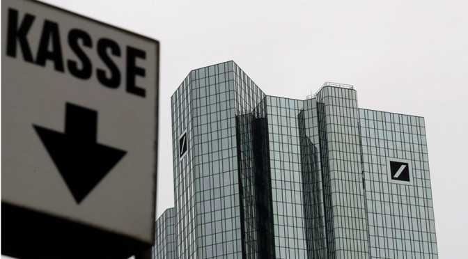 O setor financeiro está em sobressalto por causa do Deutsche Bank e as bolsas continuam a fustigar os títulos da instituição financeira. O gigante alemão tem estado sob pressão pela sua exposição ao mercado de derivados, crise de dívida europeia e devido à multa de 14 mil milhões de dólares (12,5 mil milhões de euros) que poderá ter de vir a pagar nos EUA, por más práticas ocorridas antes da crise financeira de 2008.